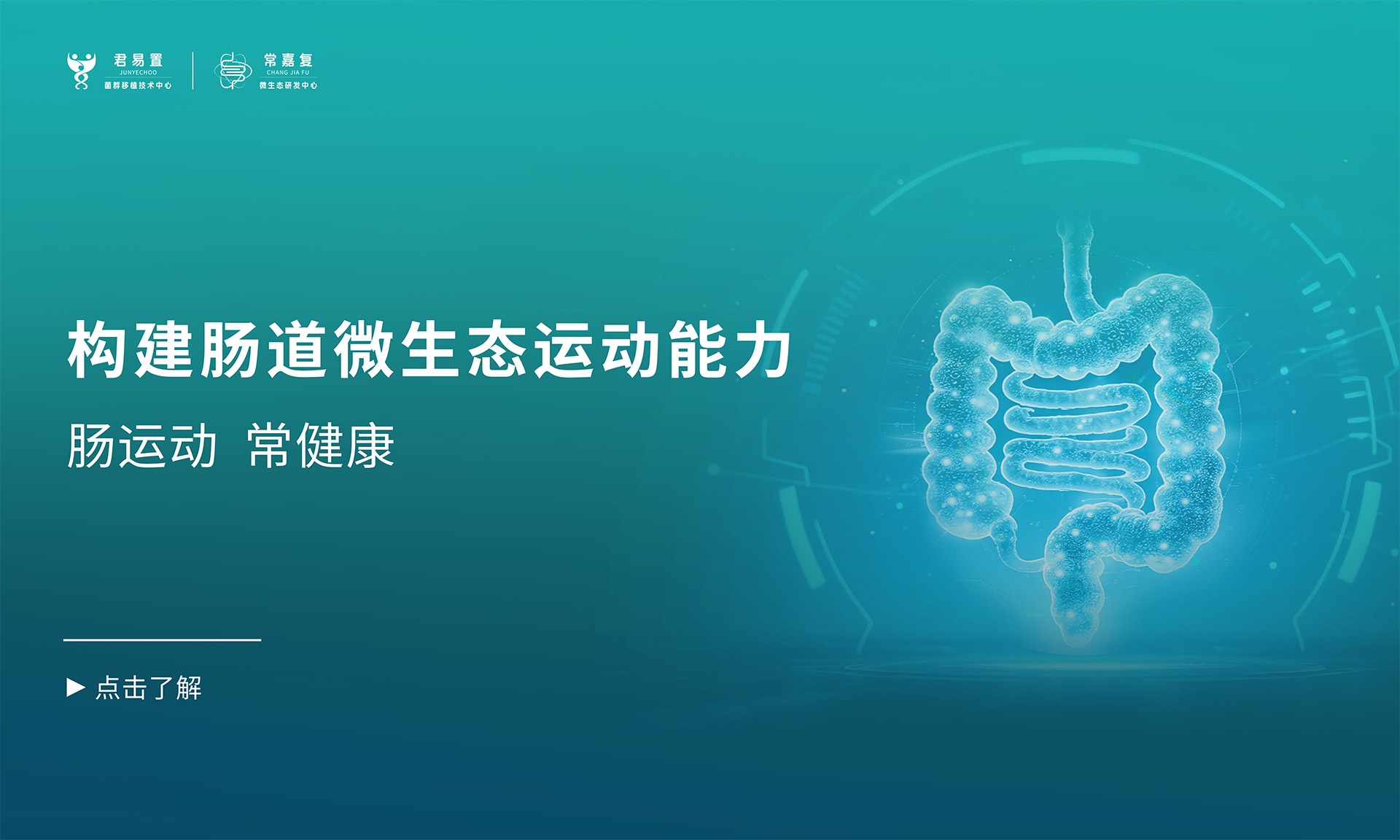君易置生物科技是一家集臨床和基礎(chǔ)研究、S·FMT?運動菌群移植技術(shù)服務(wù)及微生態(tài)產(chǎn)品和方案研發(fā)為一體,專注于人體腸道微生態(tài)能力建設(shè)和個性化康復(fù)的高新技術(shù)企業(yè) 。公司秉承“腸運動,常健康”的核心理念,以“運動菌群舒暢輕盈”為研發(fā)邏輯,嚴(yán)選具有“運動菌群特征”的優(yōu)秀供體,研發(fā)調(diào)配促進(jìn)菌群定植的定植伴侶,致力于通過科學(xué)調(diào)配菌群定植配方,提升患者的腸道微生態(tài)運動能力,實現(xiàn)疾病預(yù)防與治療。